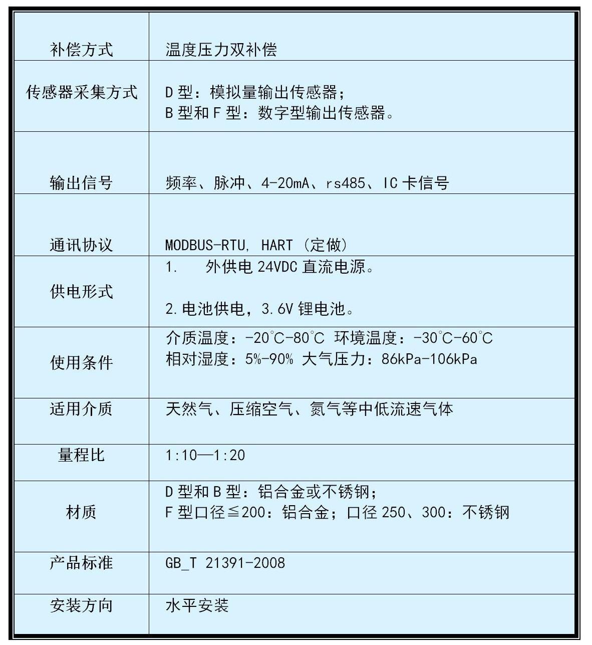 D/ B型適合計量天然氣、氮氣、 氫氣、壓縮空氣等潔凈的中低流速氣體。F型適合貿易計量天然氣、氮氣、氫氣、壓縮空氣等潔凈 的中低流速氣體